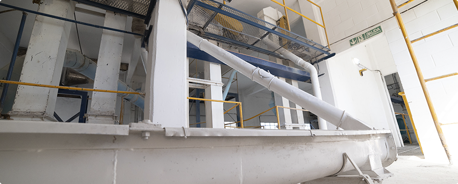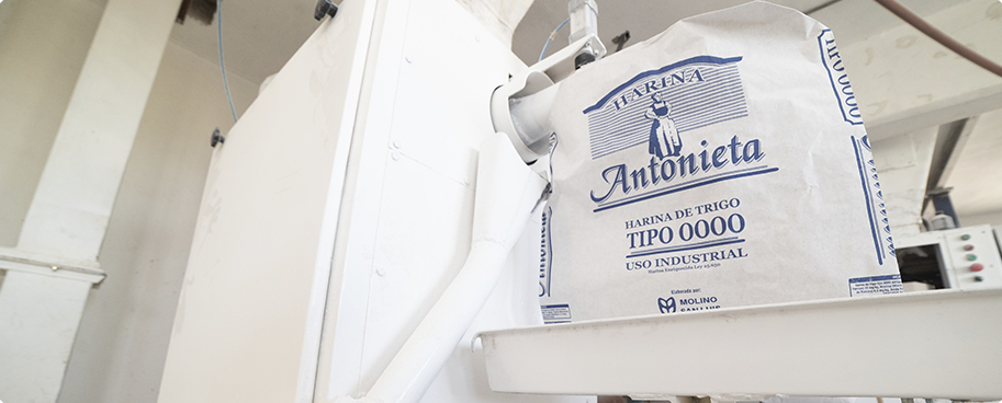 Nuestro proceso productivo desarrollado por profesionales, bajo un diagrama de molienda producto de más de 50 años de experiencia en molinería, posee una combinación de automatización acompañado de continua calibración y control del personal, logrando de esta manera obtener un producto estable en sus parámetros durante todo el año. La capacidad de molienda nos permite producir 90.000 kg de harina y subproductos por día, y almacenar en planta materias primas para un mes de producción.